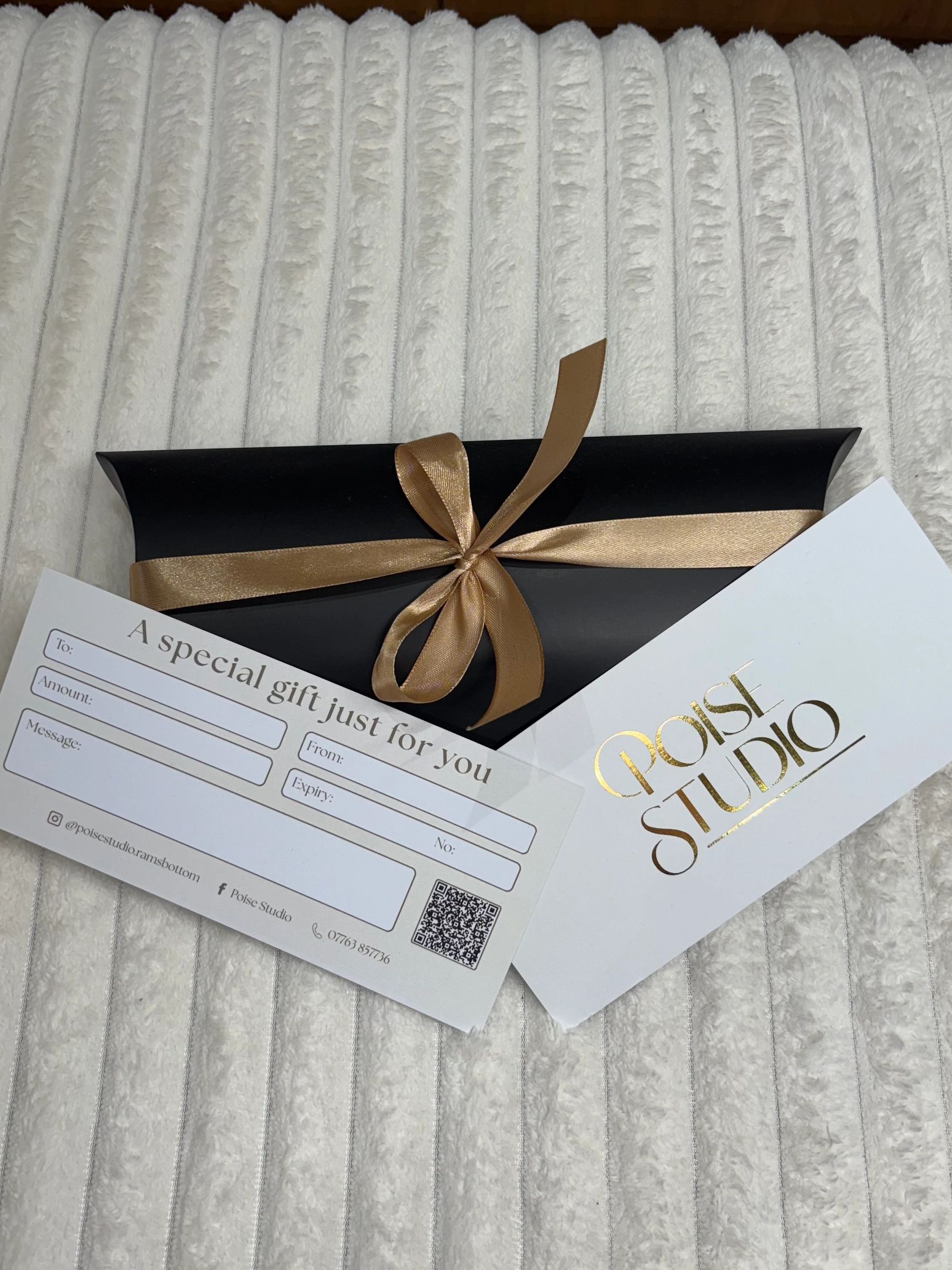 At Poise Studio we offer both physical and e-vouchers to suit your needs - beautifully presented and completely customisable.